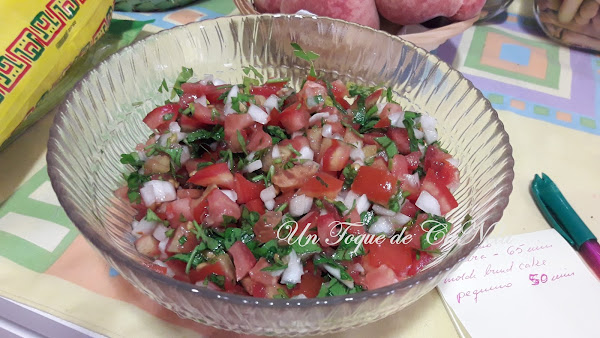 Mezclar en un bol, el tomate, la cebolla y el jalapeño.