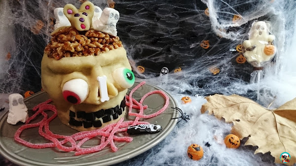 Espero que disfrutes con esta tarta divertida y deliciosa para la noche de halloween. También puedes consultar otra recetas para esa noche: helado de calabaza asada y calavera de halloween.