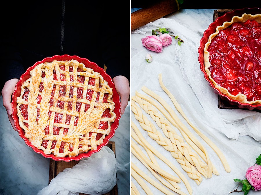 Aún estamos en plena temporada de fresas y como no podía ser de otra manera teniendo en cuenta que mi familia paterna procede de Huelva, me decantado por preparar éste pie perfecto para cualquier ocasión y con el que deslumbraréis a cualquiera por lo bonito de su presentación a modo de enrejado y el delicado contraste de la fruta horneada con la masa quebrada.