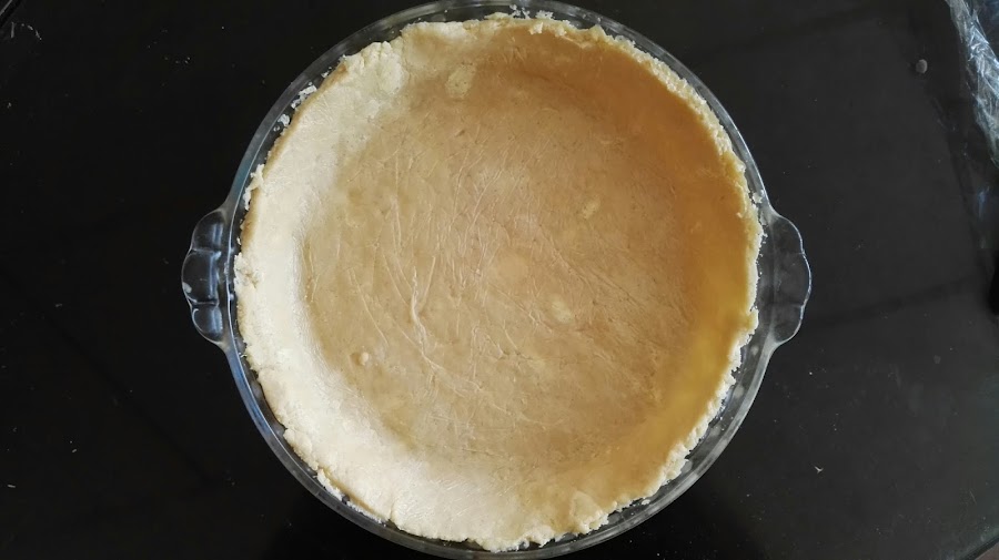 Estiramos la masa en dos círculos de medio centímetro aproximadamente. Con el más grande hacemos la base, cubriendo el molde para pie que utilizaremos.