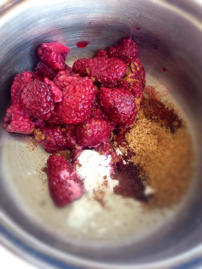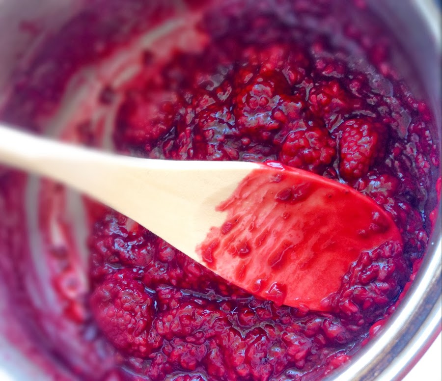2. En una olla mezcla las moras, el azúcar morena, la fécula y la canela, pon a cocinar a fuego lento hasta obtener una consistencia de mermelada. Dejar reposar