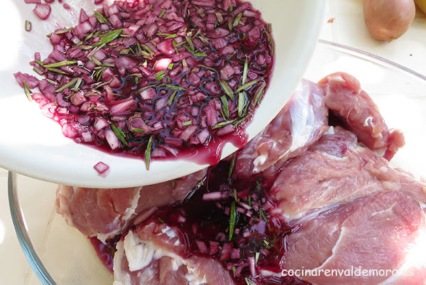 Echamos la marinada sobre la pierna. La dejamos marinar durante varias horas, volteándolo de vez en cuando.