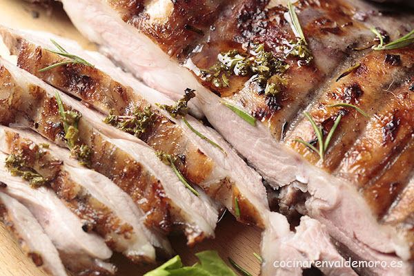 Cuando ya esta lista, la presentamos fileteada en una tabla. Para acompañar, nosotros hicimos esta salsa de menta mientras se asaba el cordero, una salsa agridulce que le va a las mil maravillas.