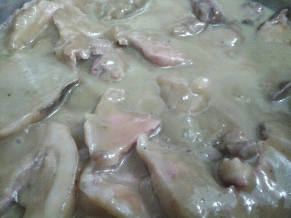 Cortamos la carne en filetes y dejamos que hierva unos minutos en la salsa.