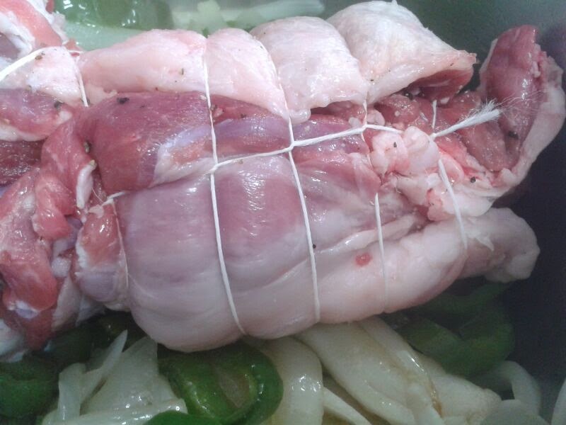 Mientras se cocinan las verduras, atamos la pierna con hilo de cocina para que no pierda la forma.
