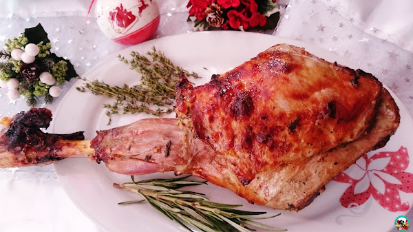 3.- Precalentamos el horno a 200ºC durante 15 minutos. Bajamos la temperatura a 180ºC y asamos la pierna 120 minutos. Cada 30 minutos le damos la vuelta a la pierna y vertemos el jugo sobre ella.