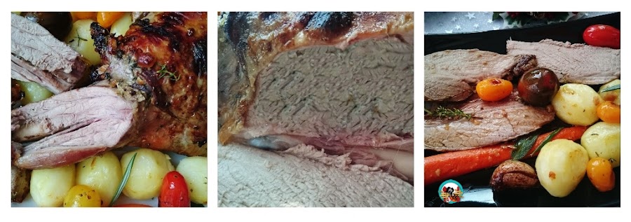 Aunque parezca increíble, este asado es bajo en grasas, y contiene menos calorías que un asado tradicional. Ha sido cocinada con poco aceite y una guarnición de verduras cocidas.
