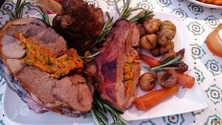 Por esa razón os recomiendo comer un asado de carne cuando son mucho a comer esos días. En está receta, lo del relleno de verduras,corre de mi cuenta, para sufrir una indigestión de tanta carne,dulces y demás.