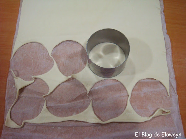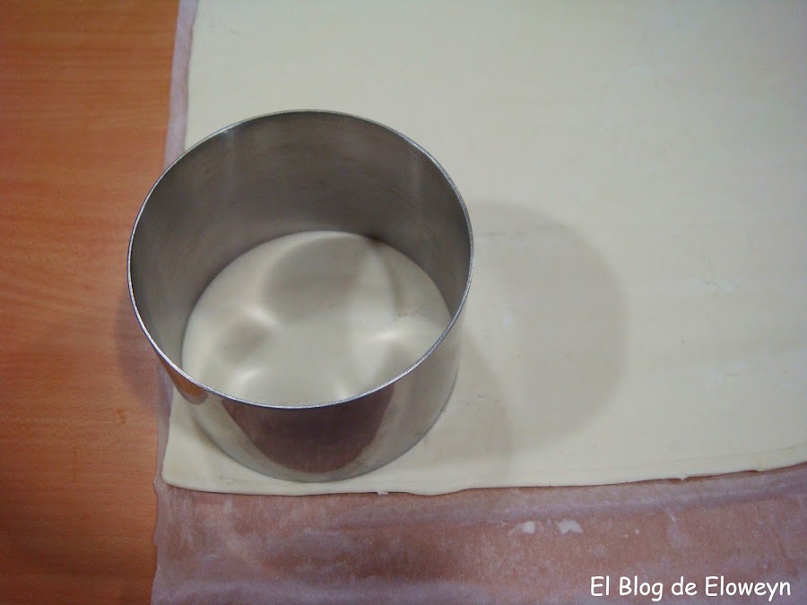 Con este tamaño salen doce círculos y sobra un poco de hojaldre. Se puede volver a usar si lo deseáis.