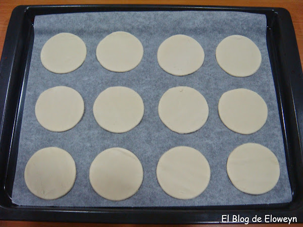Poner los círculos de hojaldre sobre una bandeja con papel de hornear por encima.