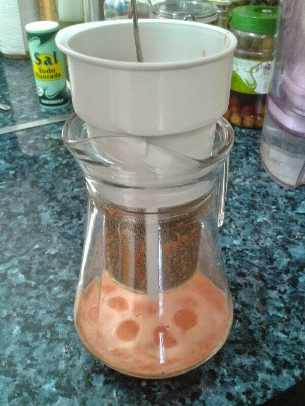 Pasamos el pimentón por un colador para que quede una crema muy suave y sin impurezas.