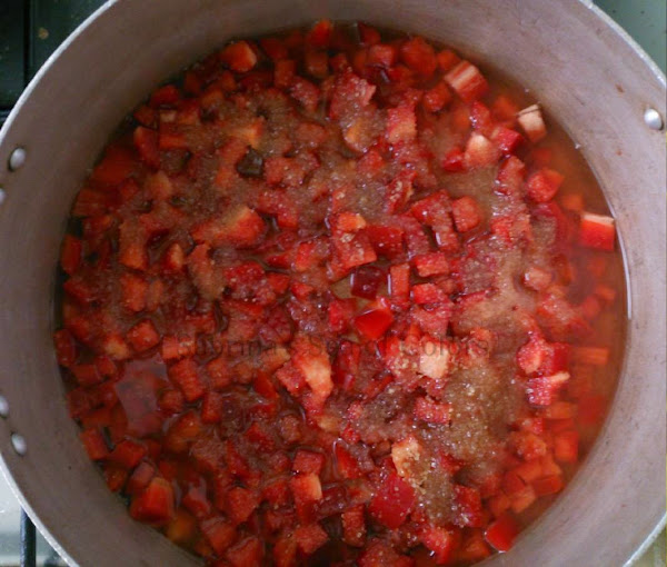 Verás como empieza a reducirse y espesarse el líquido gracias al azúcar, quedando el pimiento tierno y brillante en un melado agridulce delicioso.