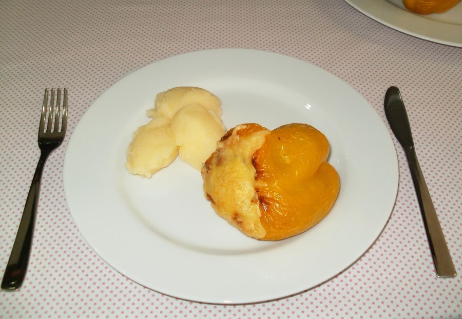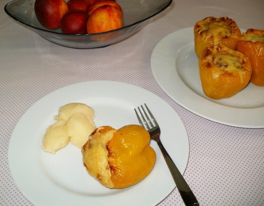 La receta de hoy se puede hacer con cualquier tipo de pimiento dulce, escogí los amarillos, porque para mi gusto tienen un sabor muy suave y una textura más tierna que las otras variedades. La carne del relleno posee un adobo sencillo y delicioso que contrasta muy bien con el delicado dulzor de los pimientos.