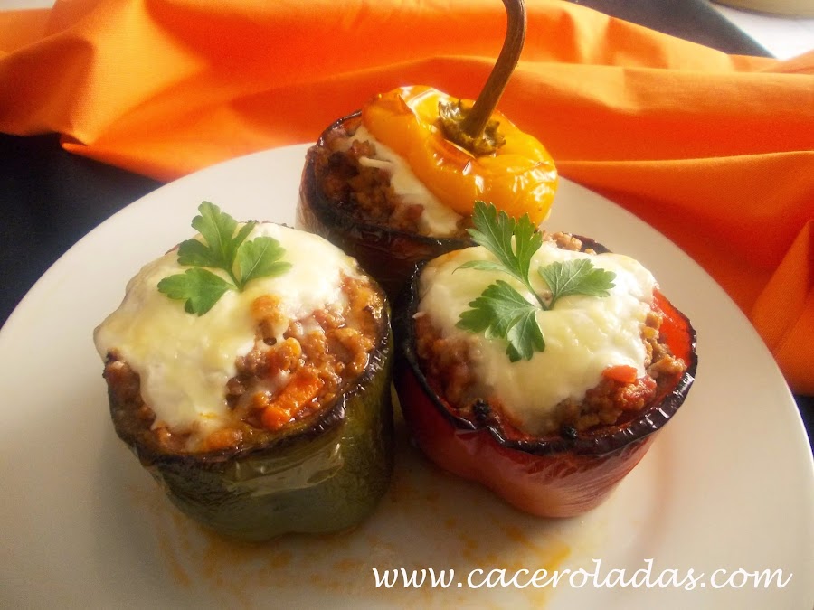 En casa nos encantan los pimientos, ya sean asados, fritos, en ensalada o como sean... Un plato muy completo nutritivo y saciante. Con un pimiento relleno por comensal, es más que suficiente.
