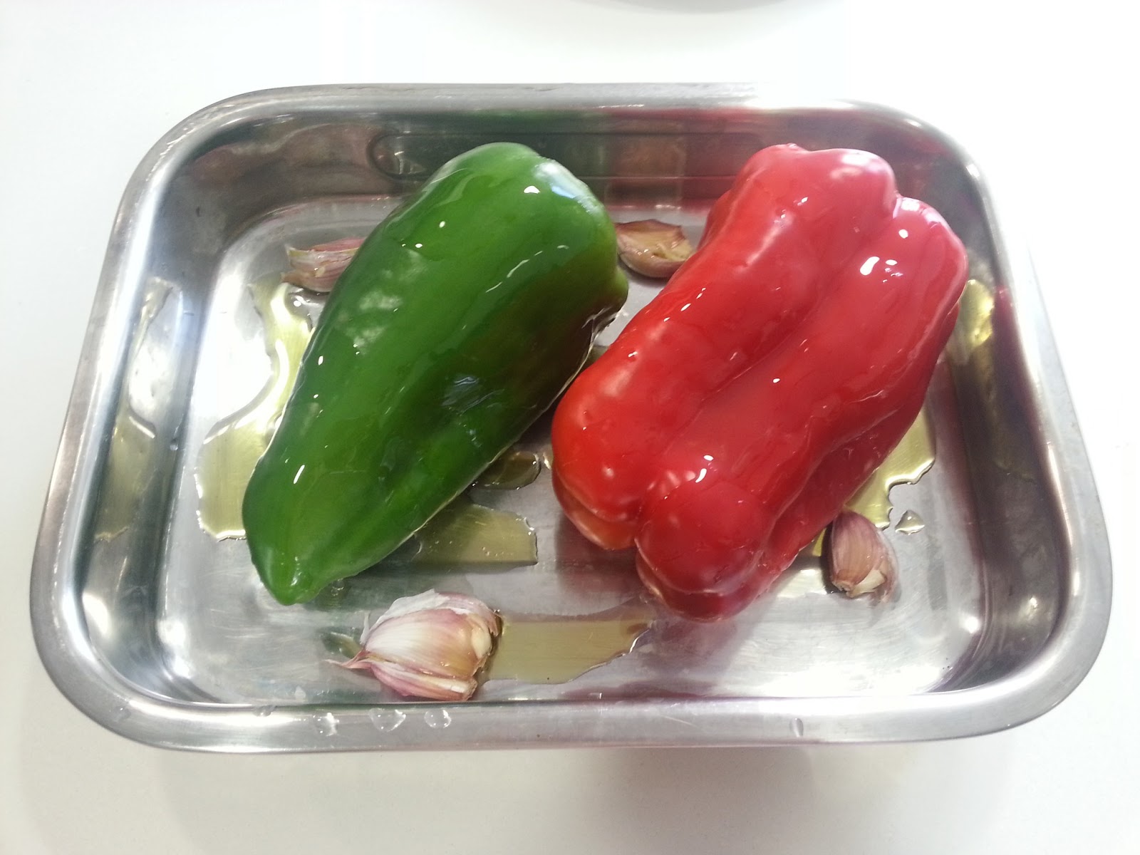 Pues aquí tenéis otro aliño, los pimientos asados, riquísimos. Y es que ya con el calor es lo que va apeteciendo, ensaladas y aliños frescos. A mí personalmente me gusta mezclar los pimientos verdes con los rojos, aunque hay quien pone sólo los rojos, cuestión de gustos....