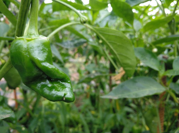 Varios meses después, tras distintas atenciones, hemos recolectado una docena de pimientos.