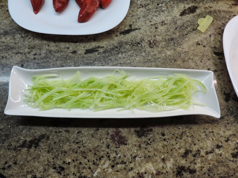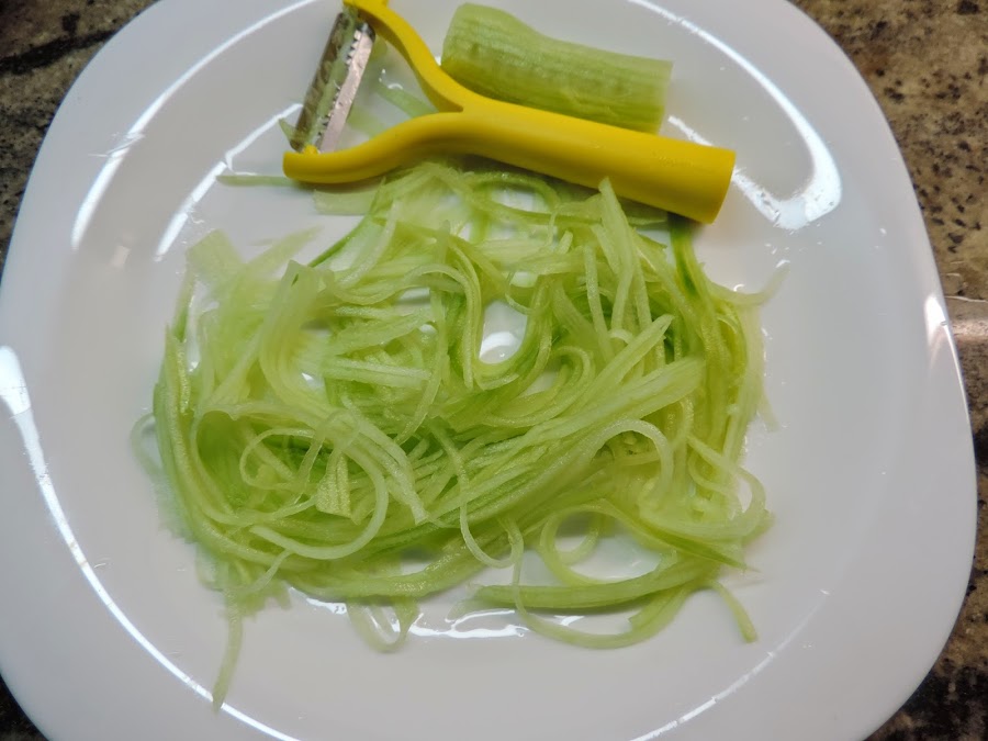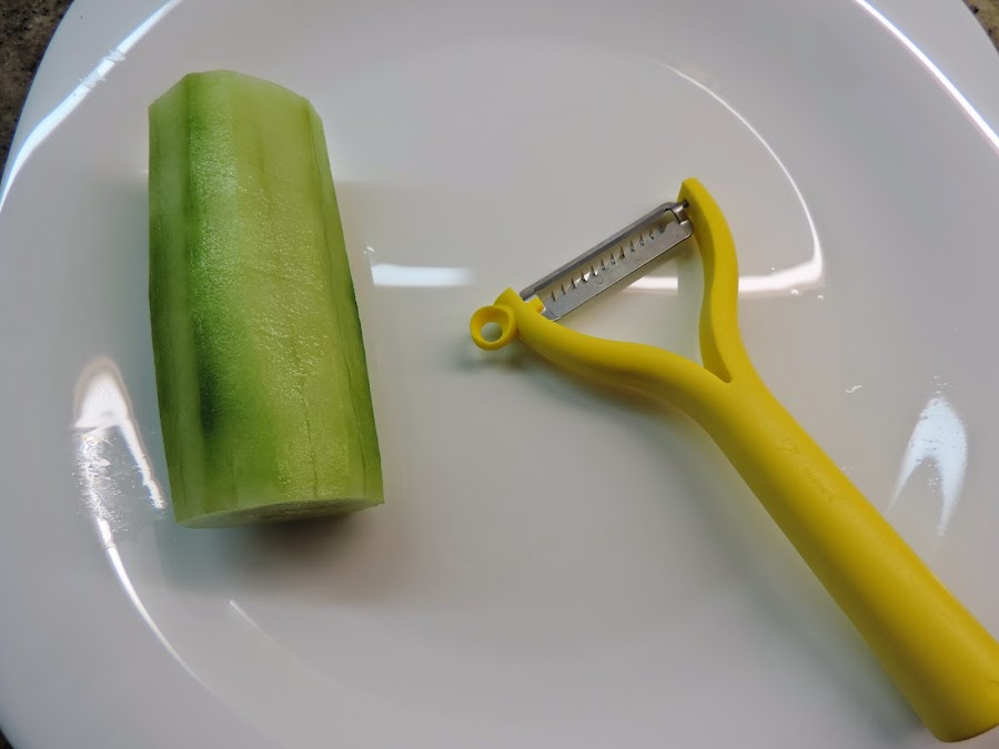 Pelamos el pepino y con el pelavegetales en juliana.