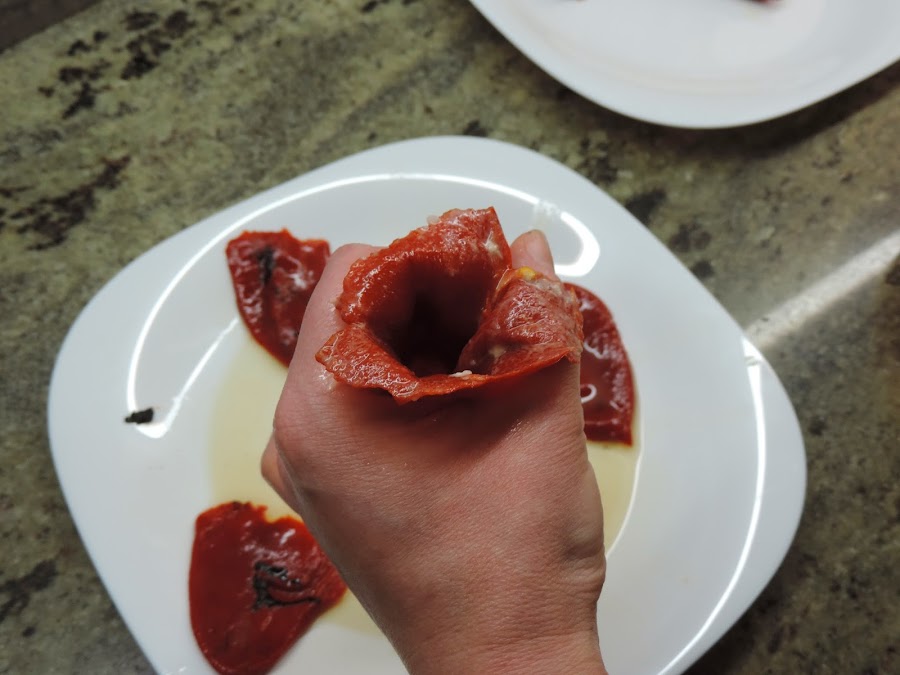 Cojemos el pimiento y abrimos para poder rellenarlo.