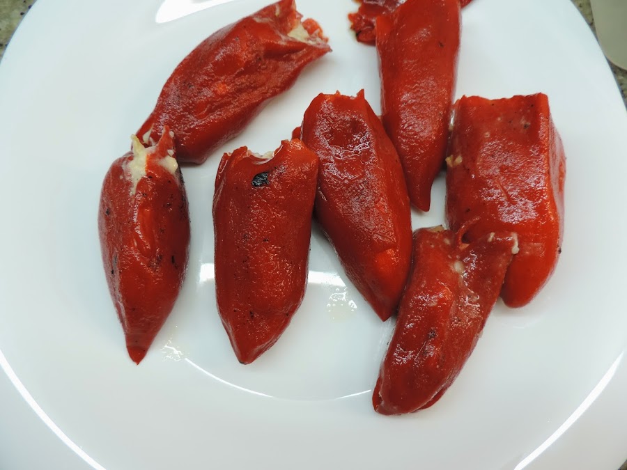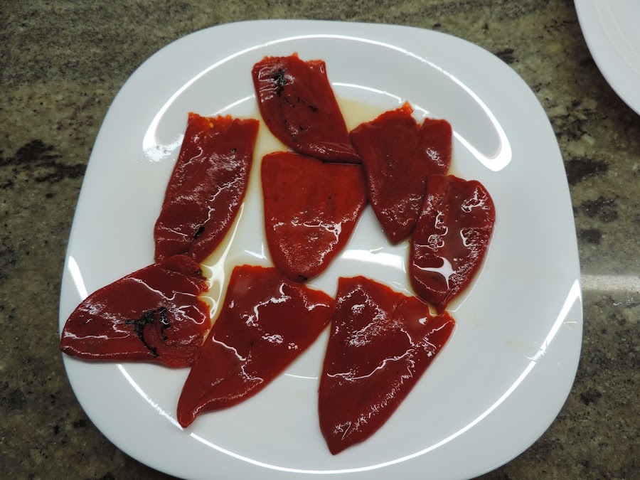 Escurrimos bien los pimientos y los ponemos en un plato.