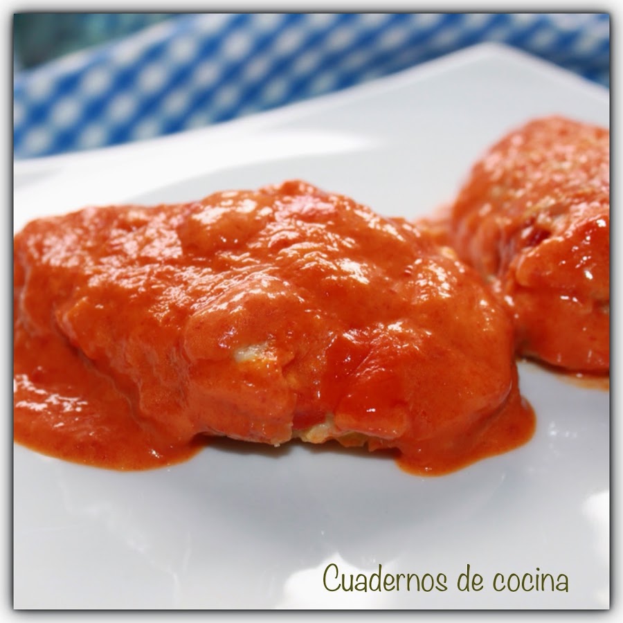 Una vez rellenos, los pasamos por harina y huevo batido y freímos en abundante aceite caliente. Los colocamos en una fuente apta para el horno y reservamos.