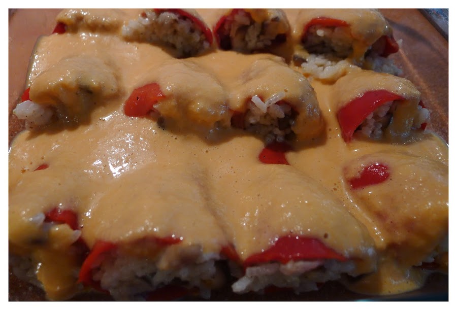 los disponemos en una fuente apta de horno y le echamos la salsa antes reservada,encima.