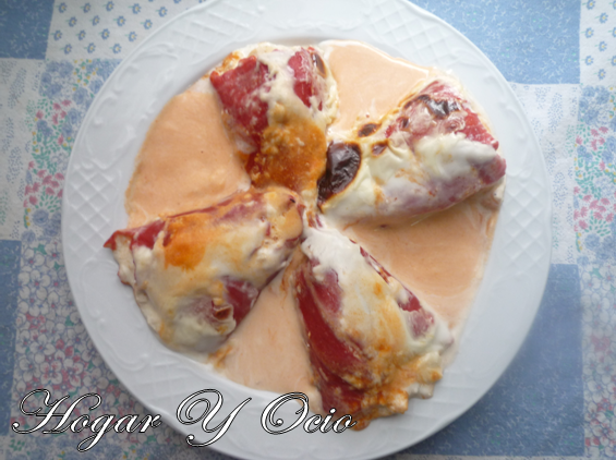 3. Rellenamos los pimientos con la mezcla de queso y atún. A continuación, los vamos colocando uno a uno en la fuente de horno.