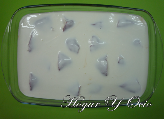 4. Cubrimos la preparación con nata (crema de leche) líquida y horneamos durante 15 -20 min. 190º.