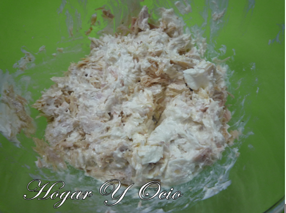 1. En un recipiente mezclamos bien el atún con el queso. Reservamos.