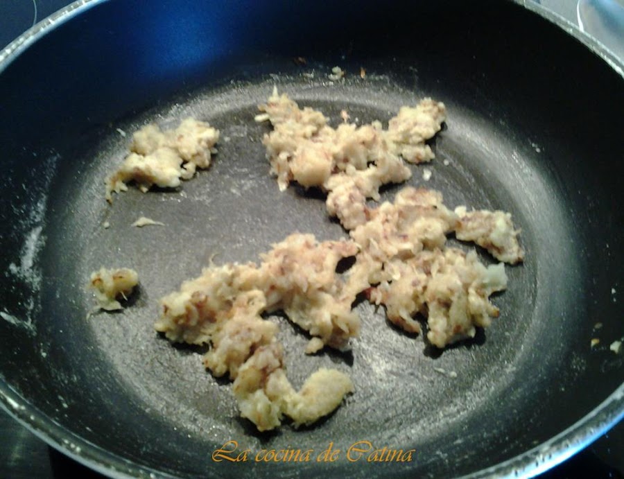 cuando estén dorados añadimos la harina, removiendo continuamente para evitar que se queme.