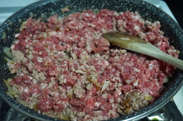 Cuando empiece a tomar color, echaremos la carne picada.