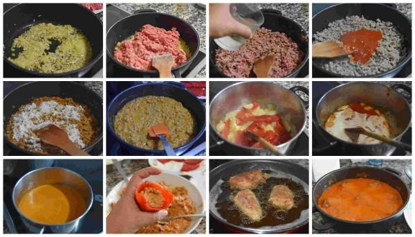 Elaboración de los pimientos del piquillo rellenos de carne: