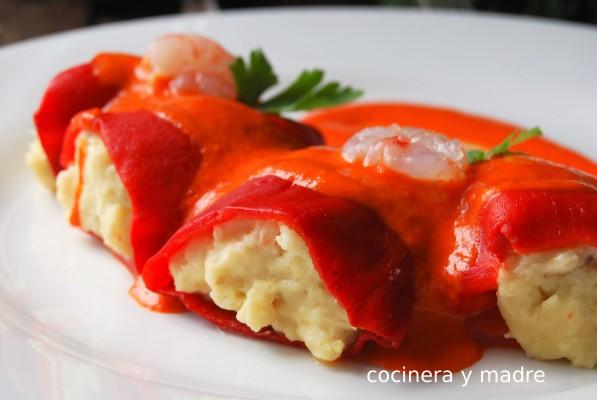 Pimientos del piquillo rellenos de merluza y gambas
