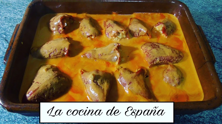Lo primero que tenemos que hacer es calentar el aceite en una sartén, una vez que está caliente se rehoga la merluza y las gambas, se deja hasta que absorba todo el agua que sueltan las gambas y la merluza cuando se a evaporado el agua se le echa la nata (crema de leche), la pimienta y la sal, se mezcla bien y se deja reducir la nata (crema de leche) como si fuera una pasta, ahora se reserva en una fuente para luego. Mientras en una cacerola ponemos a calentar aceite para hacer la salsa, cuando está ya caliente se le echa los pimientos y se le deja rehogar unos 10 minutos, se le echa un poquito de sal y un poquito de pimienta ,se mezcla bien. Cuando han pasado los 10 minutos se le echa el agua y se deja otros 10 minutos cuando han pasado los 10 minutos se apaga del fuego y se bate, cuándo se le acaba de batir se echa en la cacerola y se echa la nata (crema de leche) se mezcla bien y se le deja cinco minutos cociendo, cuando han pasado los 5 minutos se apaga del fuego y se deja para luego, mientras cogemos una cazuela de barro y vamos rellenando los de pimientos de piquillo con la mezcla de la merluza y las gambas, según se van rellenando se va poniendo en la cazuela de barro sin que se pegue o se junten. Cuándo se han llenado todos los pimientos y están bien colocados en la cazuela de barro lo que hacemos es echar la salsa por encima de todos los pimientos hasta que se acaba la salsa, se pone al fuego y cuando empiece a hervir tiene que estar 10 minutos cuando han pasado los 10 minutos ya está listo para comer.