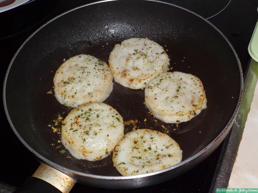 En una sartén con un poco de aceite, los cocinaremos a fuego medio-alto, hasta que estén totalmente cocinados. Los sacamos y dejamos templar.