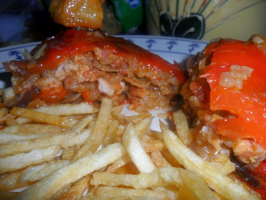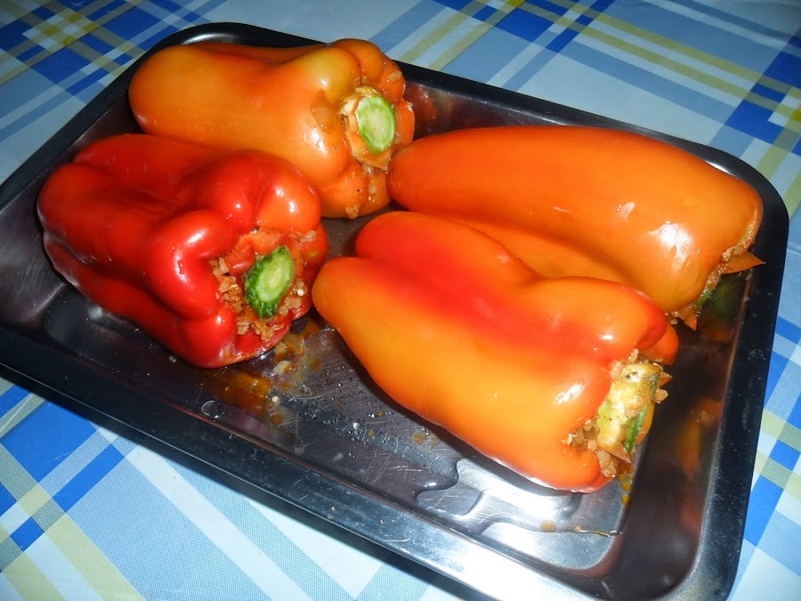 Rellenar los pimientos con la mezcla y tapar con su tapa.