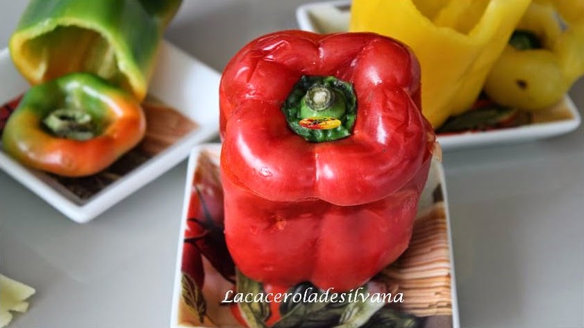 Mientras tanto le quitamos la tapita a los pimentones y le sacamos todas las semillas y lavamos muy bien.