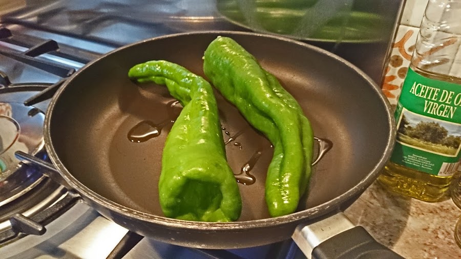 Pasamos los pimientos ya lavados por la sartén para dorarlos un poco.