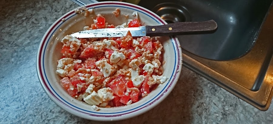 Es tan sencillo como cortar en dados pequeños el tomate, el queso, el pavo y añadirlo todo a un bol junto con el atún (dejar un poco de aceite de la lata).