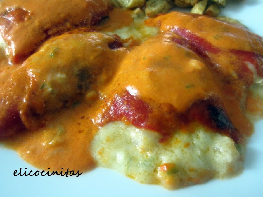 Ponemos a punto de sal y servimos junto con los pimientos rellenos.