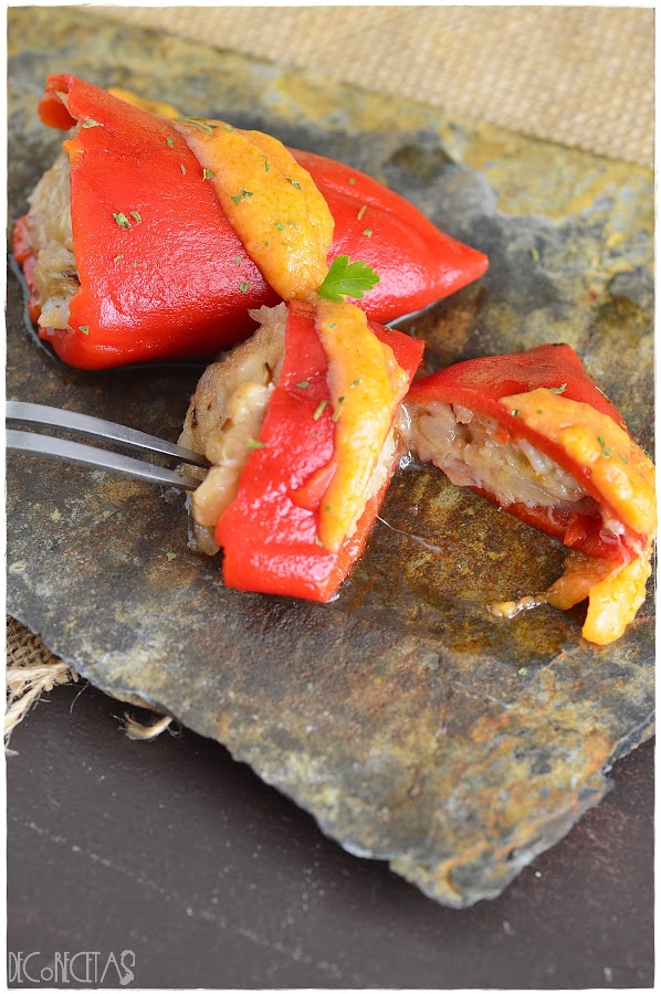 No añadí queso ni gratine porque la verdad me parece que simplemente así los pimientos ganan muchísimo pero es otra opción que no está nada mal