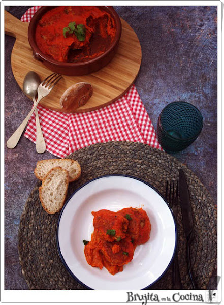 Les rebozamos pasando por harina y huevo, a la sartén, escurrimos en un plato con papel y les vamos dejando en la cazuela con la salsa para que cojas sabor.