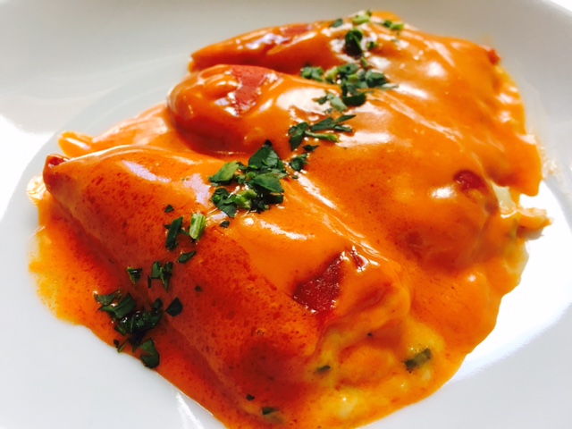 Además tenía unos pimientos del piquillo que embotamos este verano en casa y era la combinación perfecta. Así que dicho y hecho, me preparé unos pimientos rellenos con bacalao y esta salsita muy ricos y fáciles de hacer.