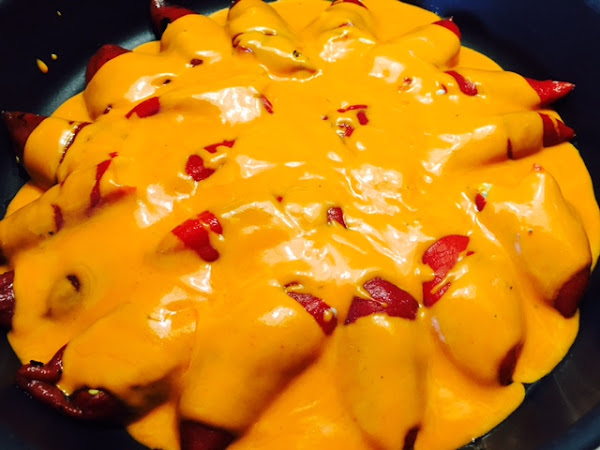 Cuando esté todos rellenados, echar por encima la salsa (pepechup o la que os he indicado arriba) y cocinar todo 5-10 minutos y listos para comer!!!!