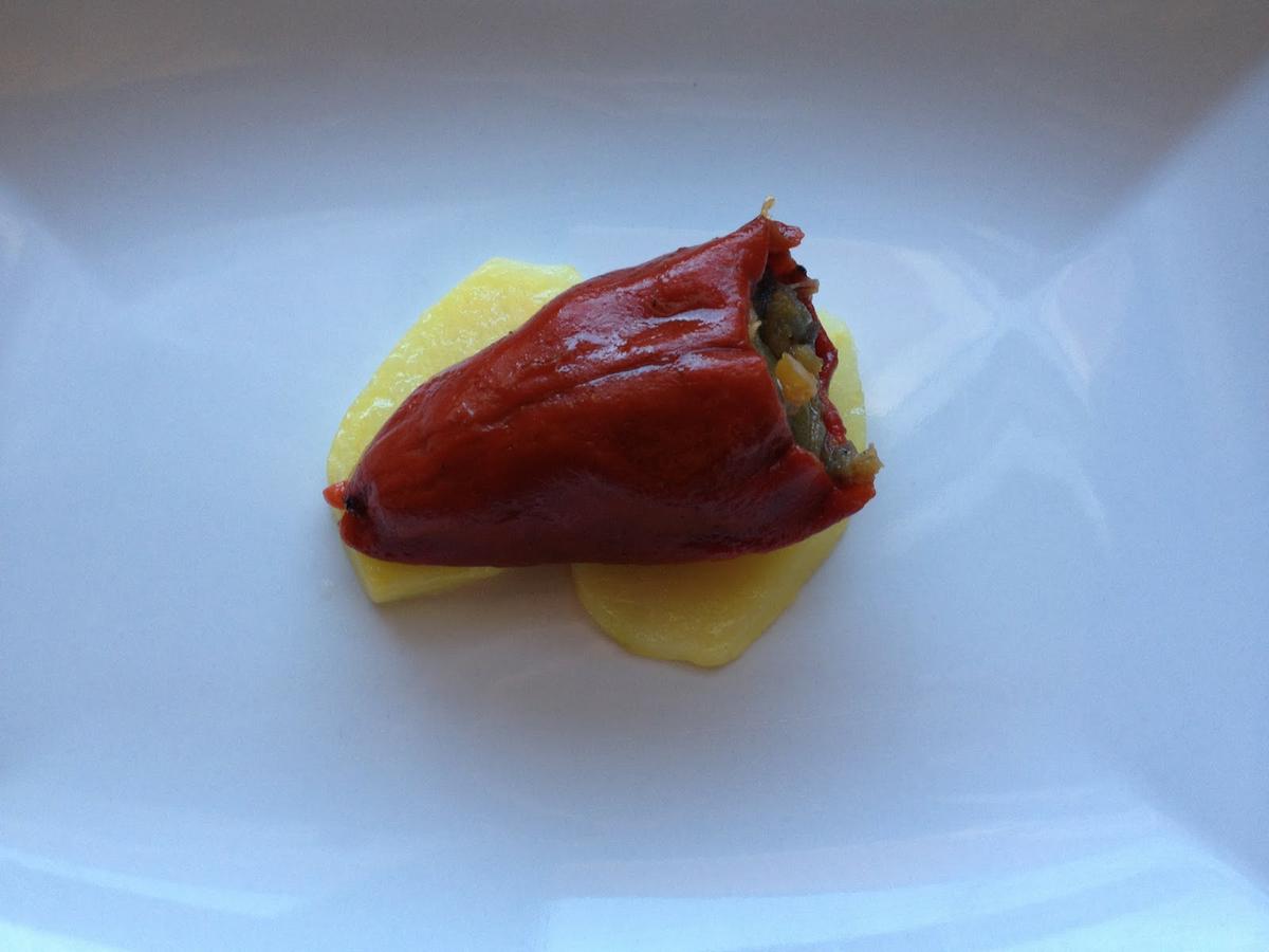 13 Finalmente para emplatar,ideal poner como base un rodaja de patata y sobre esta 1 pimiento relleno.