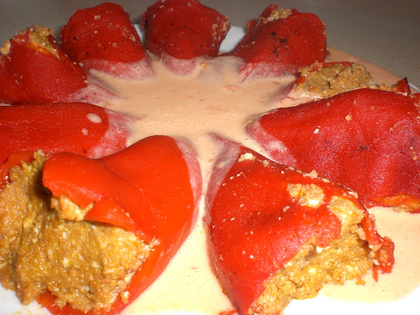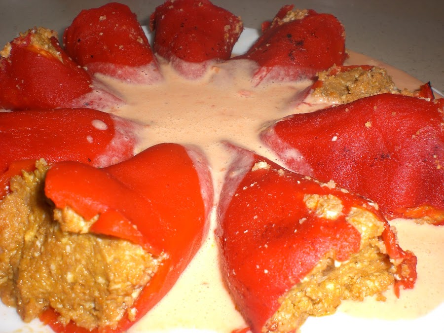 Con la salsa obtenida, la vertemos sobre los pimientos y a comer!!