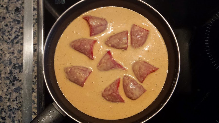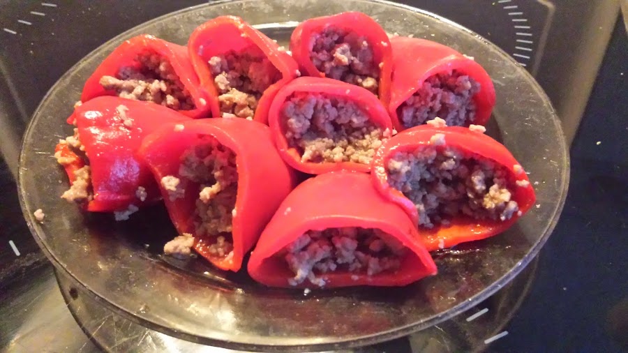 FINALIZAMOS RELLENANDO LOS PIMIENTOS Y AÑADIÉNDOLES LA SALSA.