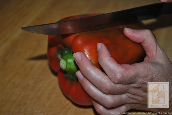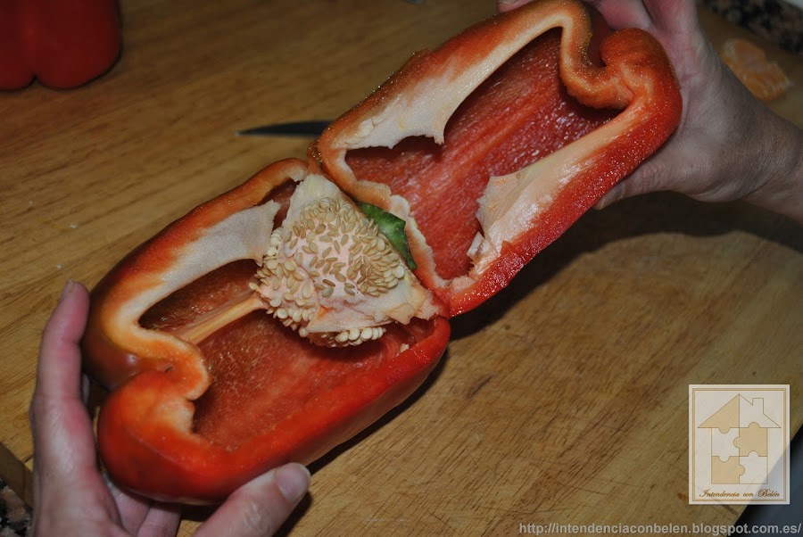 Mientras se termina de hacer, preparamos los pimientos que rellenaremos.