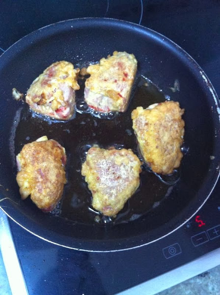 Una vez dorados por ambos lados, los sacaremos a un plato con papel absorbente mientras preparamos la base del pimiento.