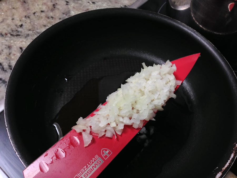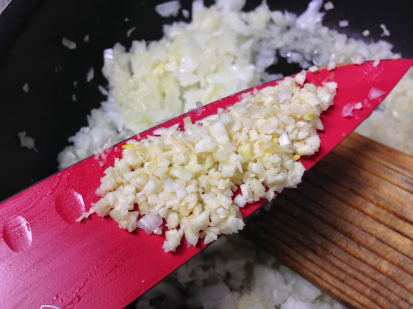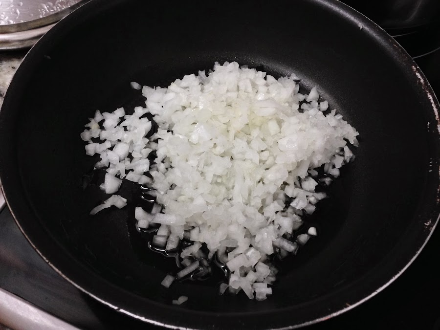 Empezaremos cortando la cebolla y los ajos muy picaditos, para añadirlo a una sartén con un chorrito de aceite de oliva, puesto a fuego medio previamente.