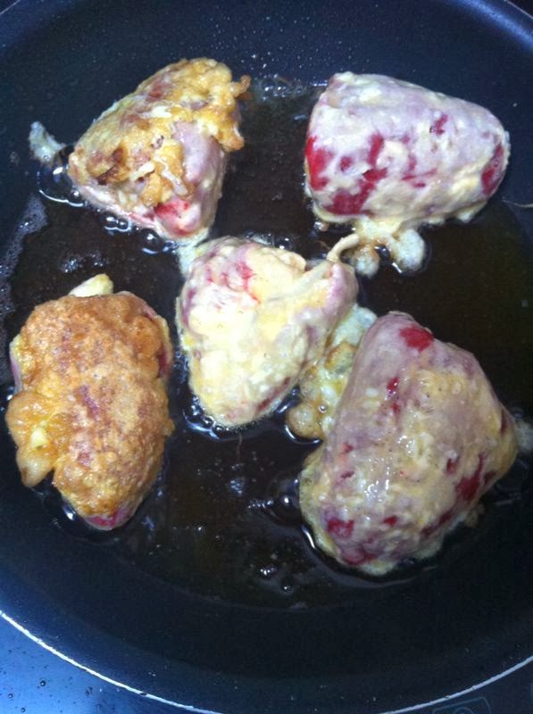 Ahora prepararemos los pimientos para freír. Si no hacerlos todos, podréis congelar el resto sin rebozar en un táper. Se conservan estupendamente, para prepararlos otro día.